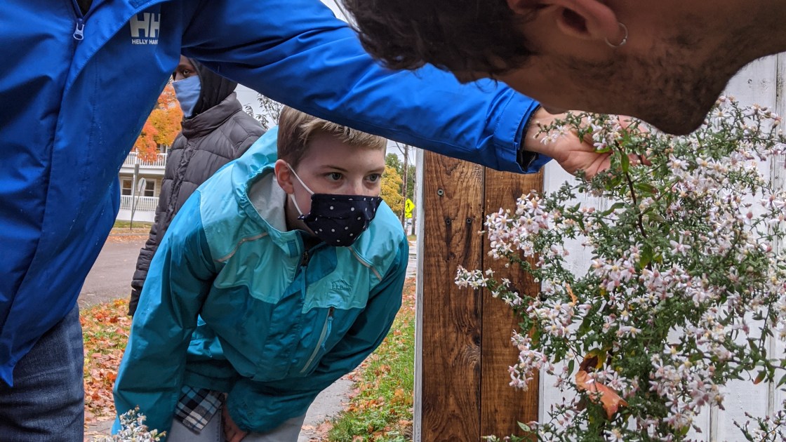 While walking from the O.N.E. Community Center, off of North Street, to Pomeroy park, we stopped by some bright purple flowers which were growing through a concrete driveway and sidewalk. To the homeowner, they were just ordinary flowers, perched on the corner of their driveway. Maybe the owner was going to trim them because they were taking up space. To our group of students and teachers, they were a home, a safe haven, and a resting spot. Earlier that day, a bee expert, Jason Mazurowski, had come in to talk with us. One thing we learned is how native bees love native plants. We also learned that male bees get kicked out of the nest and have to find places to sleep. A common place they sleep is on native flowers. When we stopped and flipped the flowers at the end of the driveway, sure enough, there were two male bumblebees sleeping. Before that day I never would have stopped, thought about, or seen those bees sleeping on those flowers. If we didn’t stop, would the bees have been there? Would we ever know that there were two male bumblebees two feet away from us? What else is out in nature that we don’t see yet?