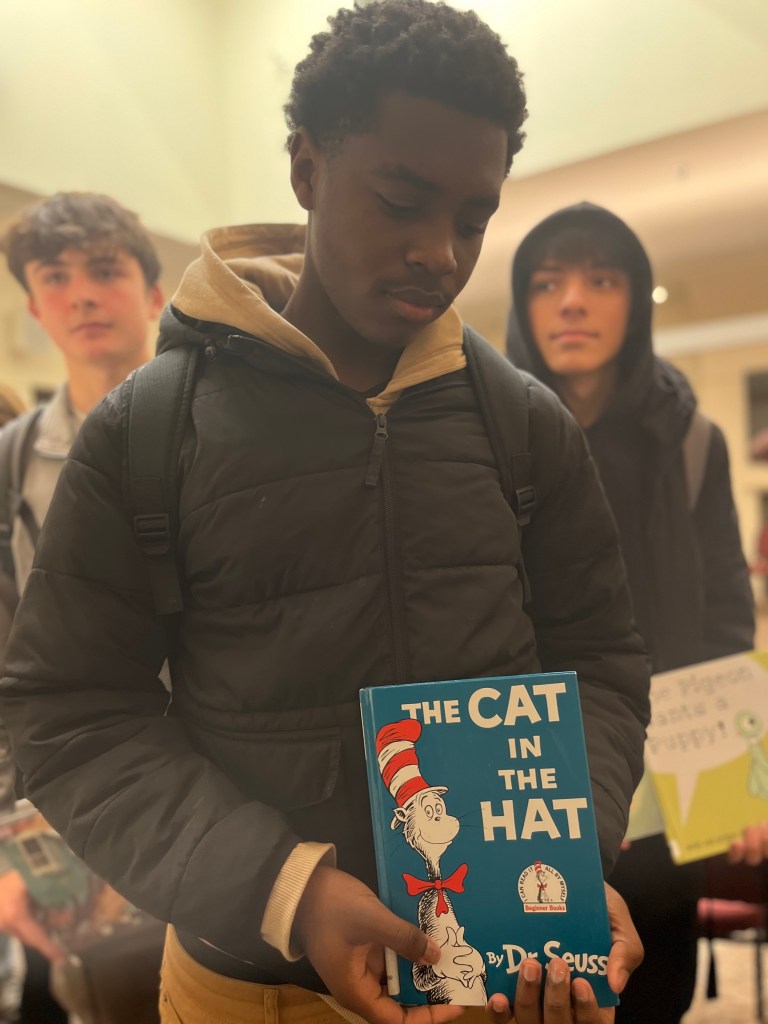 I remember being in kindergarten and having a “book buddy” from middle school, and I loved having someone older to look up to and share those moments with. It was a big deal for me back then, and I could tell that the kids felt the same way. You could see their eyes light up when we walked in—they were so excited to show us their favorite books and get creative with their drawings. I think it made them feel special because they felt so cool having “big kids” come in and spend time with them. It was like they were getting a little extra attention, which is something everyone needs, no matter how old they are.