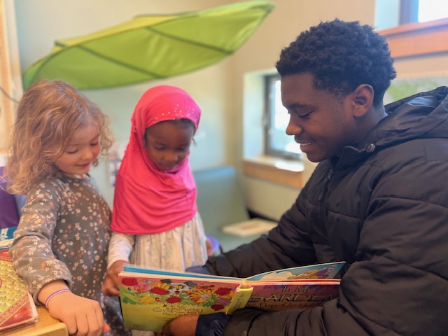 BCL13 students then shifted their focus to our culminating “Books that Matter” project. They visited Fletcher Free Library and worked alongside Youth Library Manager Megan Butterfield to select books to read to kindergartners and first graders at Integrated Arts Academy. Megan curated a collection of children’s books that reflect our list of values, and students chose one book to read as a group, and one individual book to share.