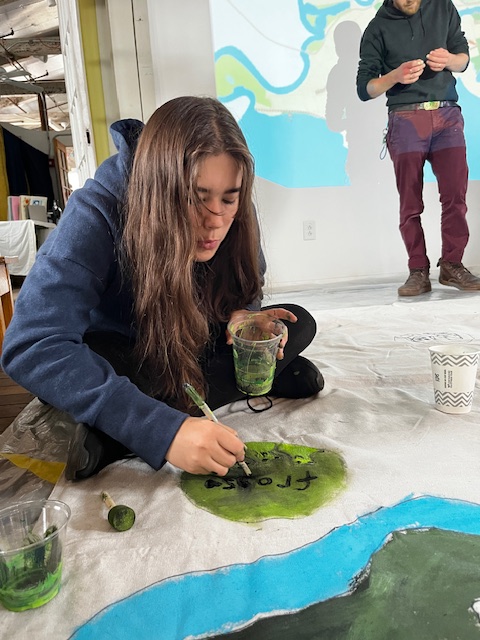 My favorite map-related activity so far has been when we painted our large-scale map with Kristian. I love art and painting, and it was so cool to have a mix of a group map and our own personal bubbles. It was fun to trace and color in the map, and I loved seeing what everyone created. This changed my understanding because tracing the lines helped me to visualize the lines of Burlington and where each thing was. It also helped me to appreciate how many parks we have, and all the natural space.