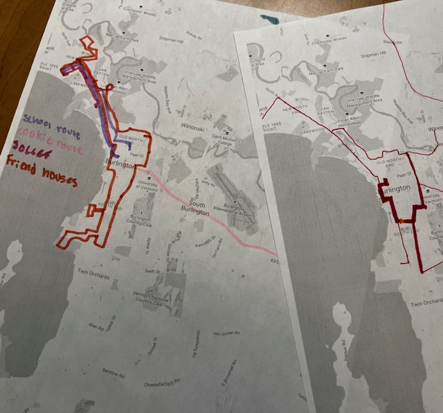 Exploring maps with the BCL15 students gets me excited for their learning, understanding, and curiosity about not only Burlington, but the broader world. I am hopeful for these students’ ability to understand complex global systems, to form connections between how Burlington operates and how larger cities function–all because they know what it’s like to zoom out, hover from above, and view the interconnected networks that make up their community.